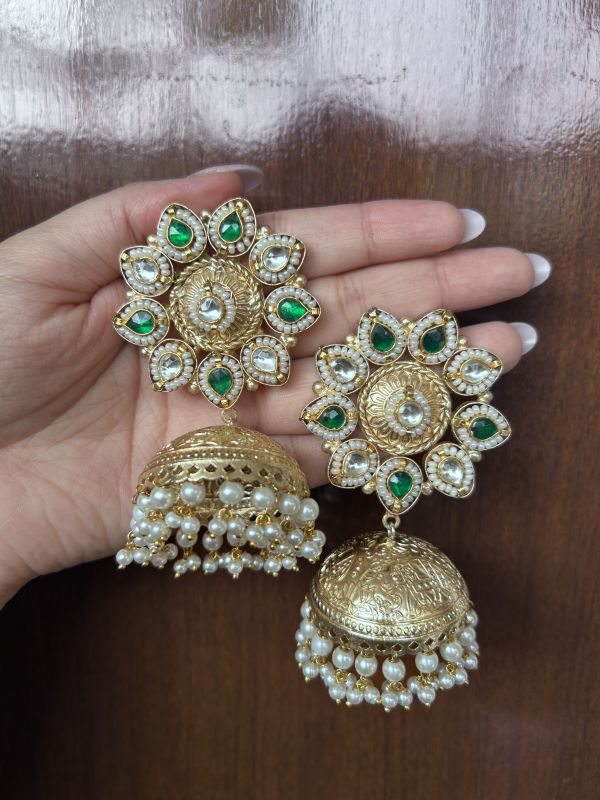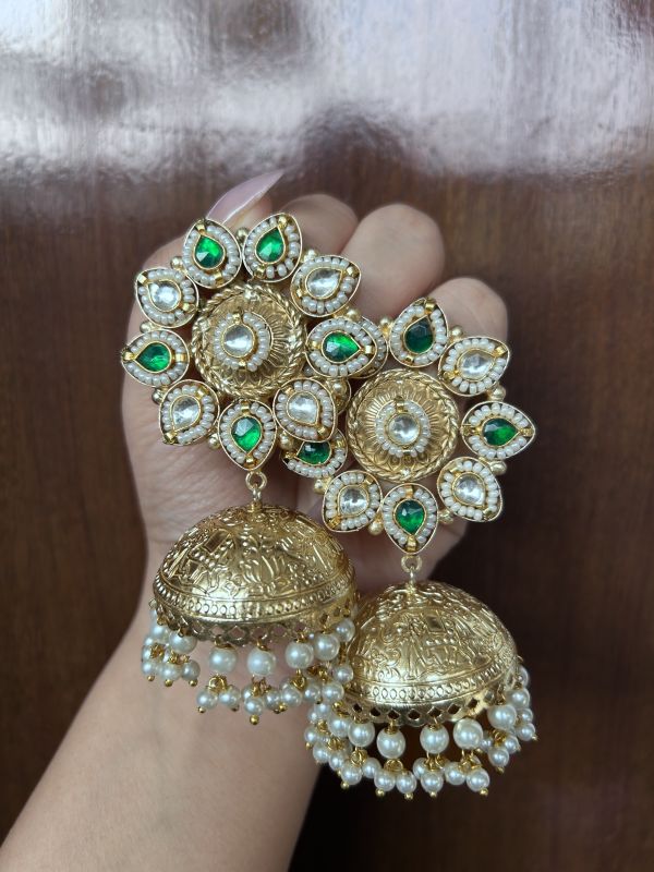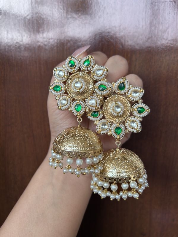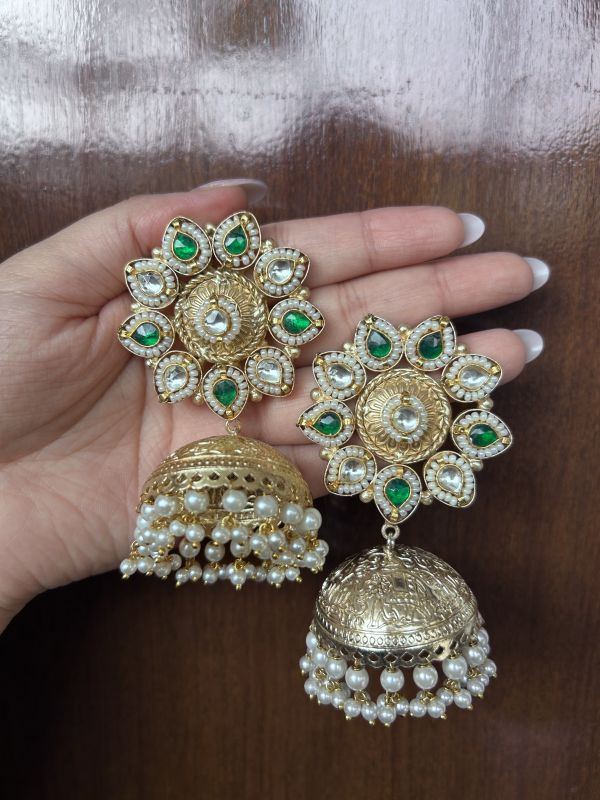 Made with intricate detailing, these earrings feature a delicate floral design paired with classic jhumki charm, making them perfect for festive occasions, weddings, parties, or everyday ethnic wear.
