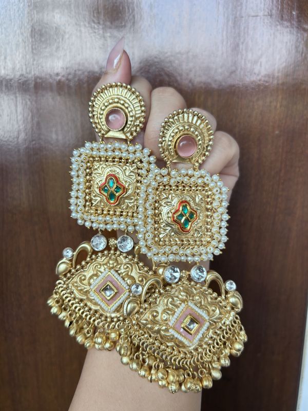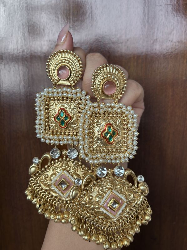 Statement Manikarnika earrings with premium finishing. Eye-catching, elegant, and perfect for enhancing any traditional look.