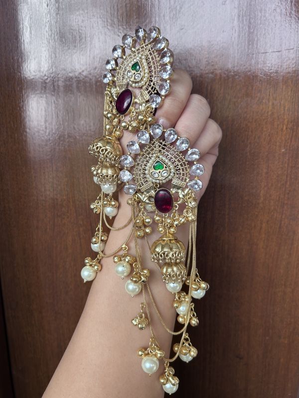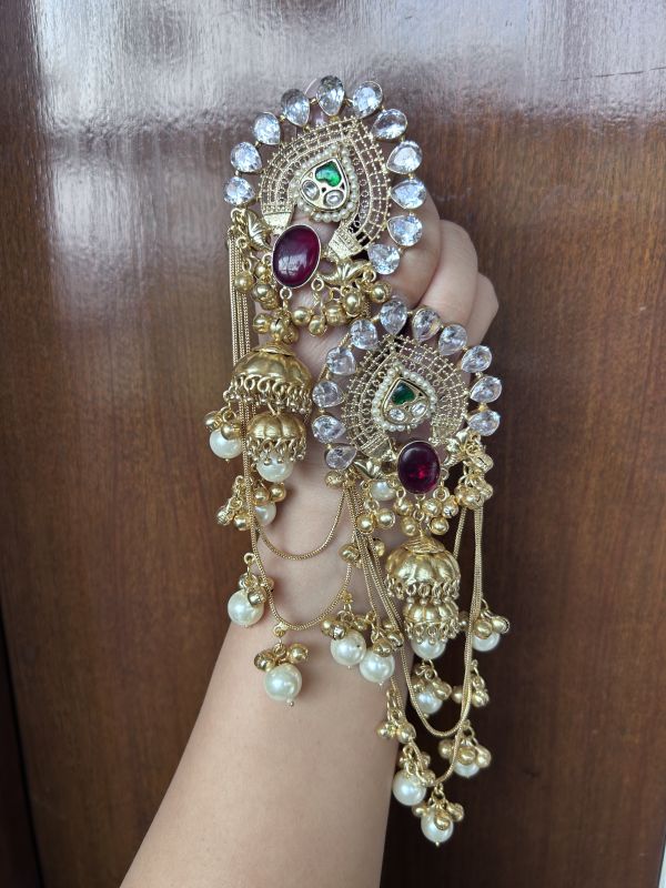 The Three Layer Ruby Earrings showcase a beautiful three-tier design with a vibrant ruby finish, creating a striking and elegant look